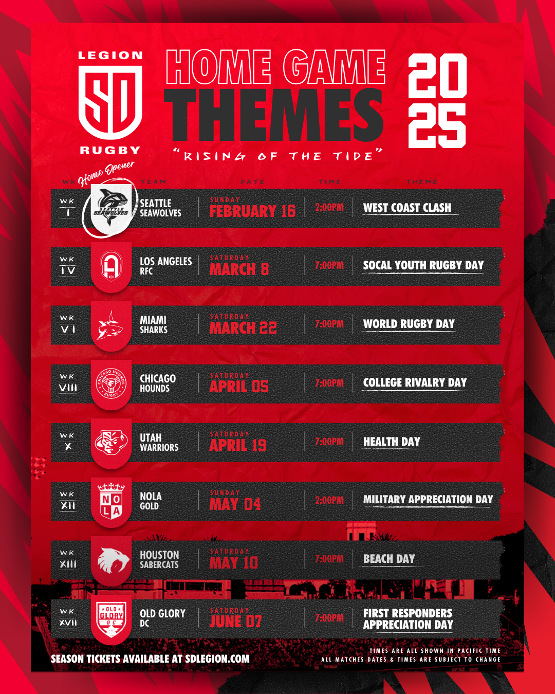 SD LEGION SCHEDULE